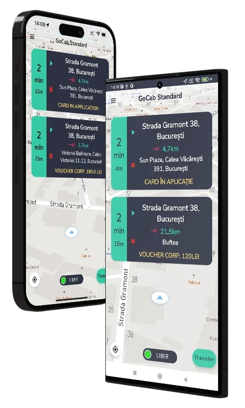 Comenzi de la utilizatorii GoCab pentru iOs, Android, Huawei, mii și mii de oameni în căutare de taxi.
